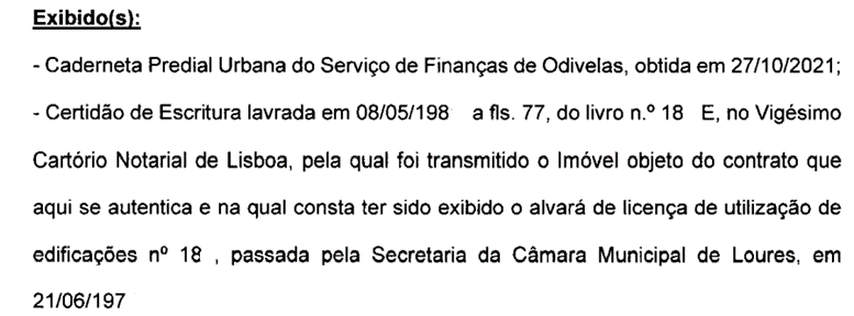 Por vezes este documento é difícil de obter, porque os atuais proprietários podem não ter arquivo do mesmo. Neste caso, quem outorga a escritura pode, eventualmente, permitir a dispensa do mesmo, caso a escritura do atual proprietário tenha feito alusão à existência do referido documento, como se pode verificar no exemplo seguinte: